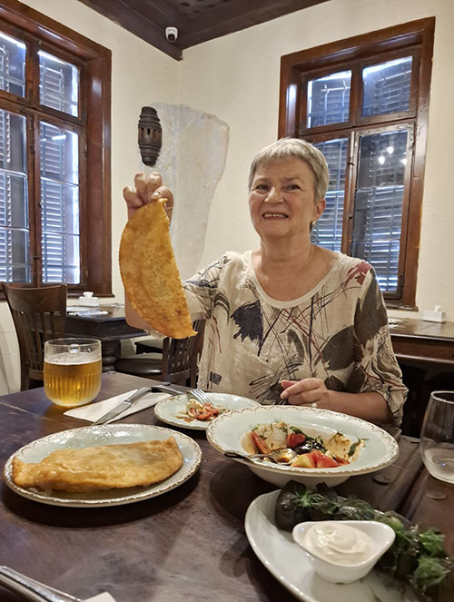 | Заказали салат, долму и чебуреки. И как же без пива? |