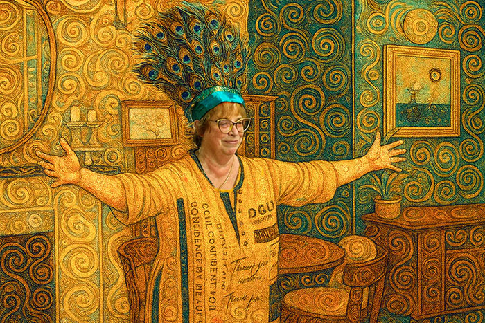 Я наскоро хлебнула чая и пошла воплощать в жизнь идею подарка. Мне пришло в дурную голову сделать в подарок корону, украшенную павлиньими перьями. Перья у меня были, но надо было больше, чтобы выглядела дорого-богато. Выручила Лейла, сказав, что у нее дома есть запас перьев. |