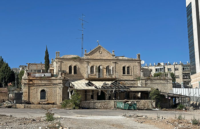 Заглядываем за забор и видим Бейт-Маханайм, когда-то самый красивый жилой дом Иерусалима.
