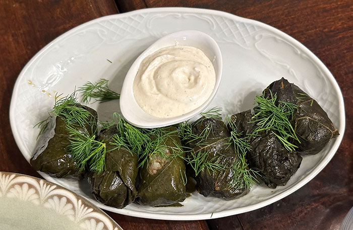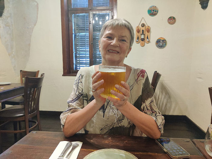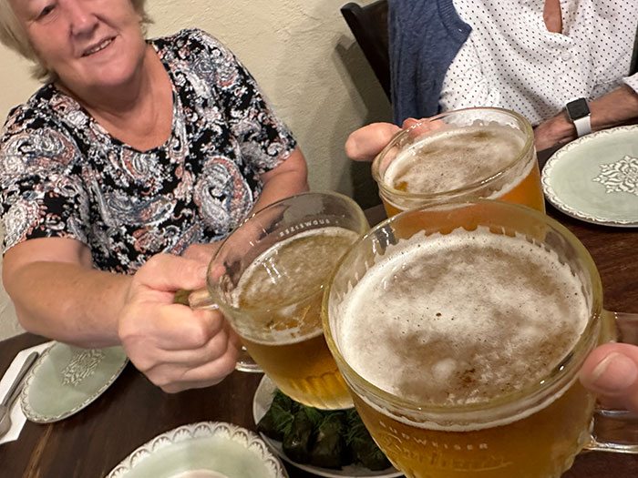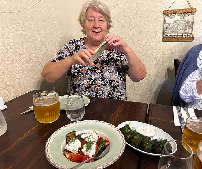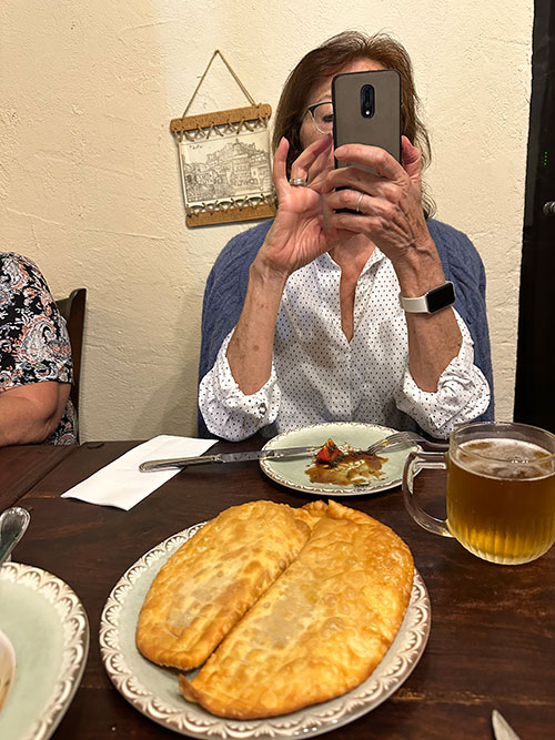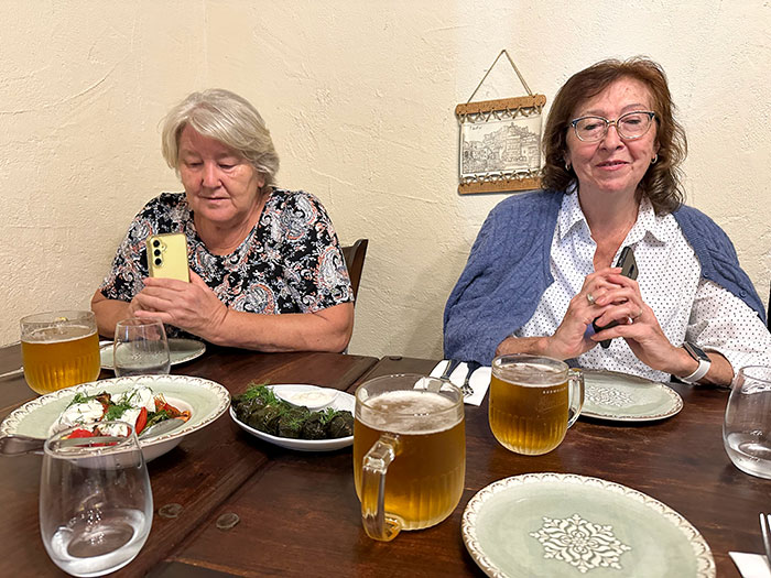 | Заказали салат, долму и чебуреки. И как же без пива? |